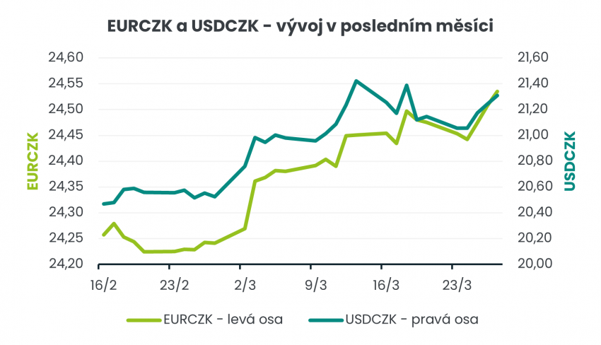 Válka na Blízkém východě trvá již měsíc a stále pokračuje. Útoky na íránskou energetickou infrastrukturu americký prezident D. Trump v tomto týdnu dvakrát odložil, přičemž deadline je nyní stanoven na 6. dubna. Zatímco na první odklad útoků v pondělí finanční trhy reagovaly pozitivně a došlo k prudkému poklesu cen ropy (krátce až na 93 USD za barel u ropy Brent), tak reakce trhů na druhý odklad ve čtvrtek večer byla již hodně vlažná. To lze interpretovat tak, že důvěra trhů v brzké ukončení války se snižuje.